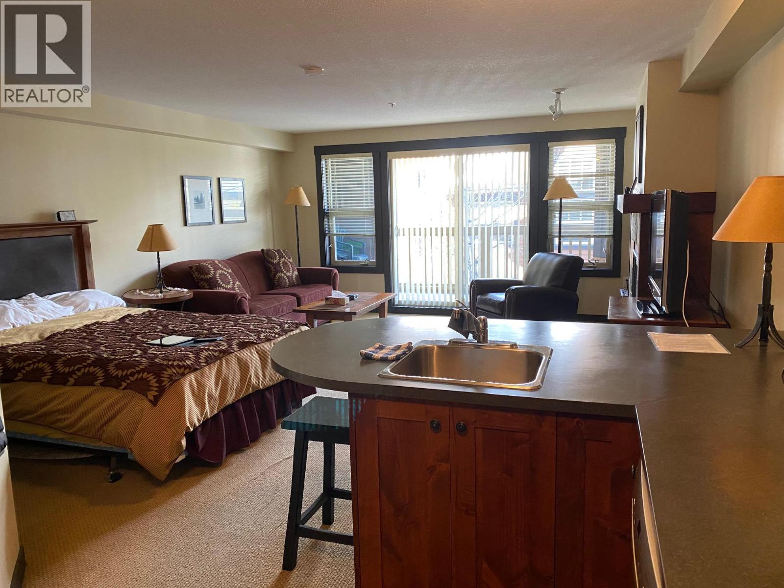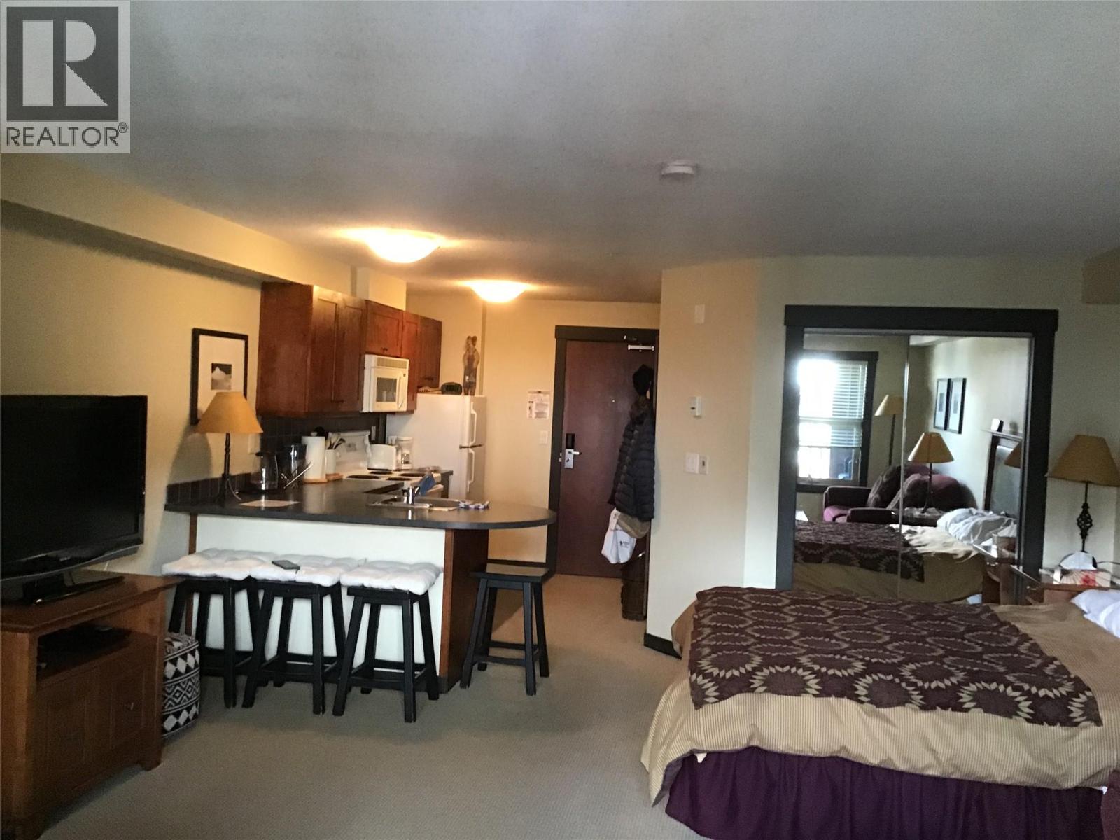 Beautifully maintained fully furnished studio. This extra large studio enjoys a shared foyer off the main hallway of the Summit Lodge bldg. Enjoy morning coffee on your deck and step outside to all that the Upper Village at Panorama has to offer...shops, restaurants, swimming. Summit Lodge has its own hot tub for a more quiet experience and you are only a minute from the large pool, water slides and the lifts to go skiing in winter. NO GST (id:47859)